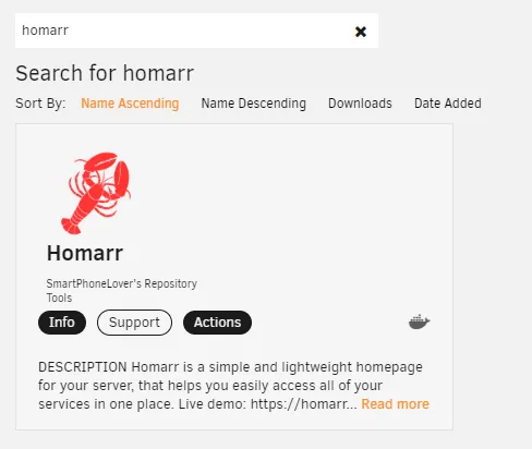 2. Search for "Homarr" and click on the result.