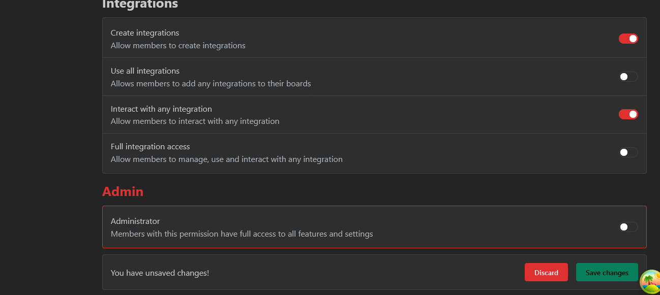 - Full board access: Allow members to view, modify, and delete all boards (Including access control and danger zone)